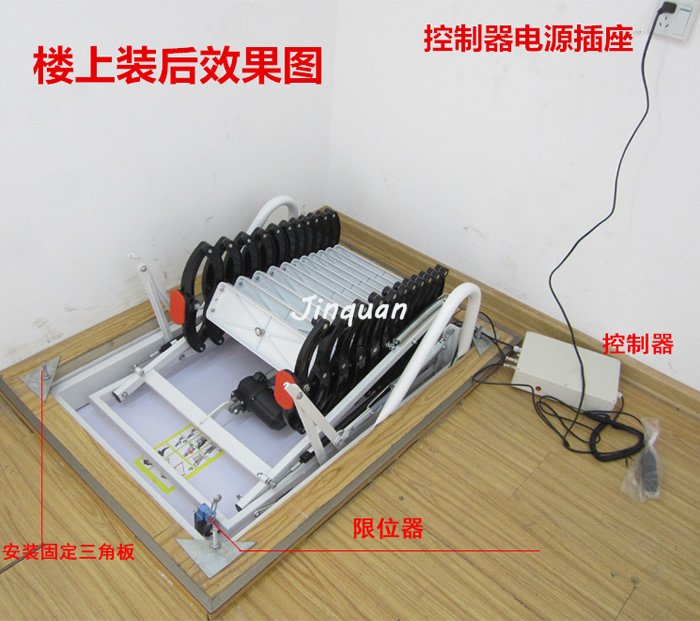 所有的鏈環(huán)都是采用扣索的形式,這樣能夠保證在多次使用中不會出現(xiàn)松動。在你不用時,你可以將其推至頂層,然后下面的木板就會自動合上,堵住樓梯口,讓人感覺不到那兒有一個樓梯洞口,所以閣樓伸縮樓梯也叫隱形伸縮樓梯。